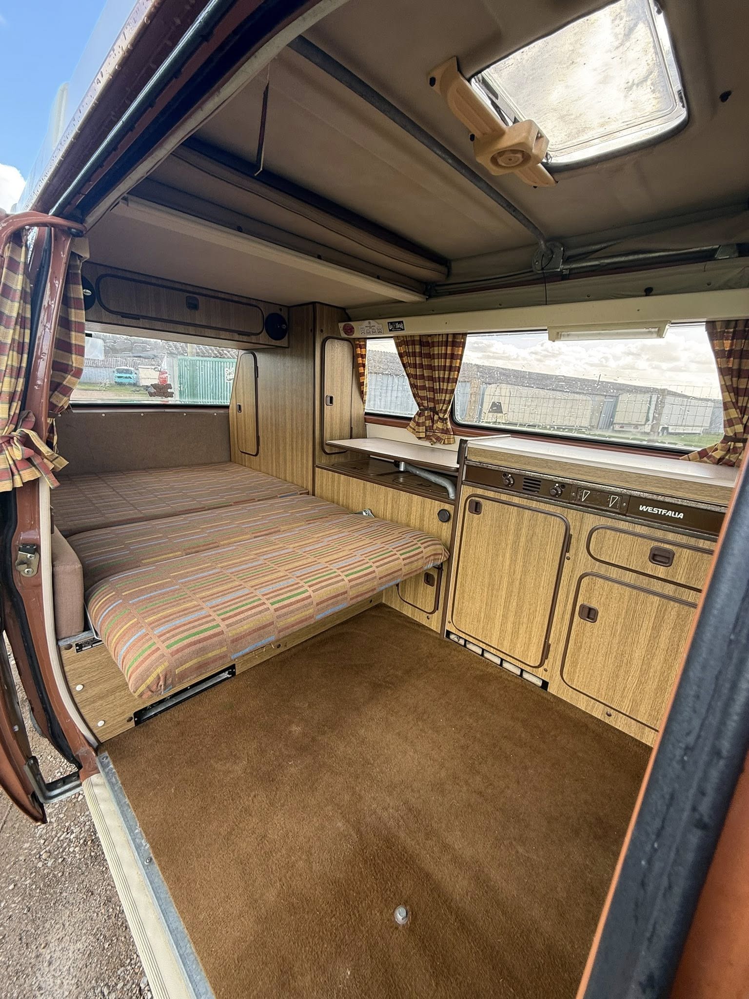 Aménagement Westfalia d’origine avec tout le charme du vintage :